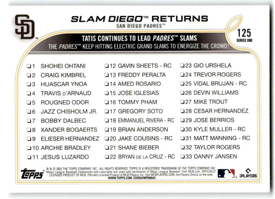 Slam Diego Returns Tatis 2022 Topps Series 1 125 San Diego Padres Ebay